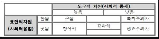 [교육행정] 하그리브스의 학교(조직) 문화 유형 도구적 차원 - 사회적 통제 : 교육결과 과업에 중점. 교사와 학생에 대해 사회적 통제 요구 표현적 차원 - 사회적 응집 : 교사와 학생간의 지원적이고 만족 스러운 관계를 중시 형식적 학교 문화 복지주의자 학교 문화 온실 학교 문화 생존주의자 학교 문화 효과적 학교 문화 하그리브스 - 5가지 학교 문화 Hargreaves는 학교문화의 중핵을 이루고 있는 차원으로 도구적 차원과 표현적차원으로 구분하고 있다. 도... blog.naver.com 백업/교육학 2020.04.05